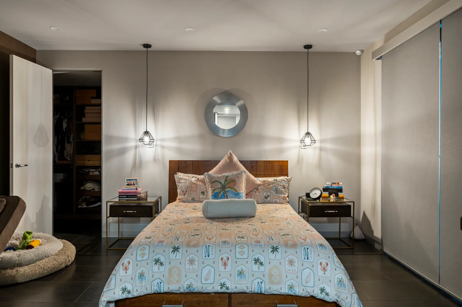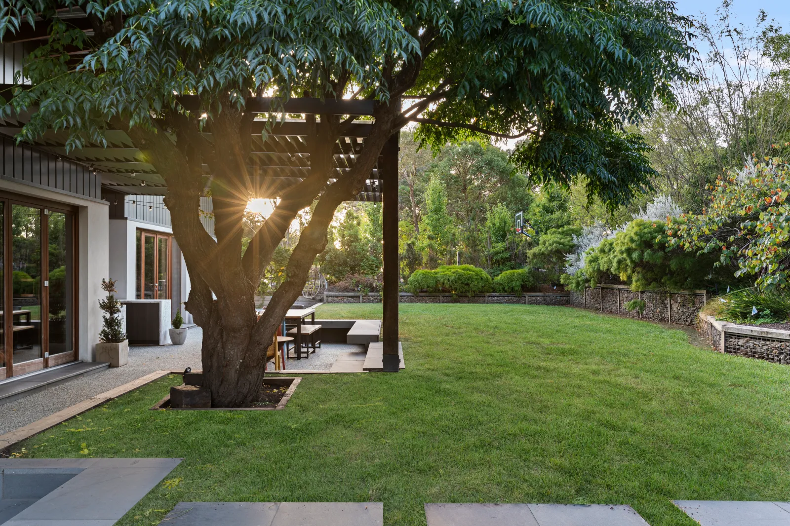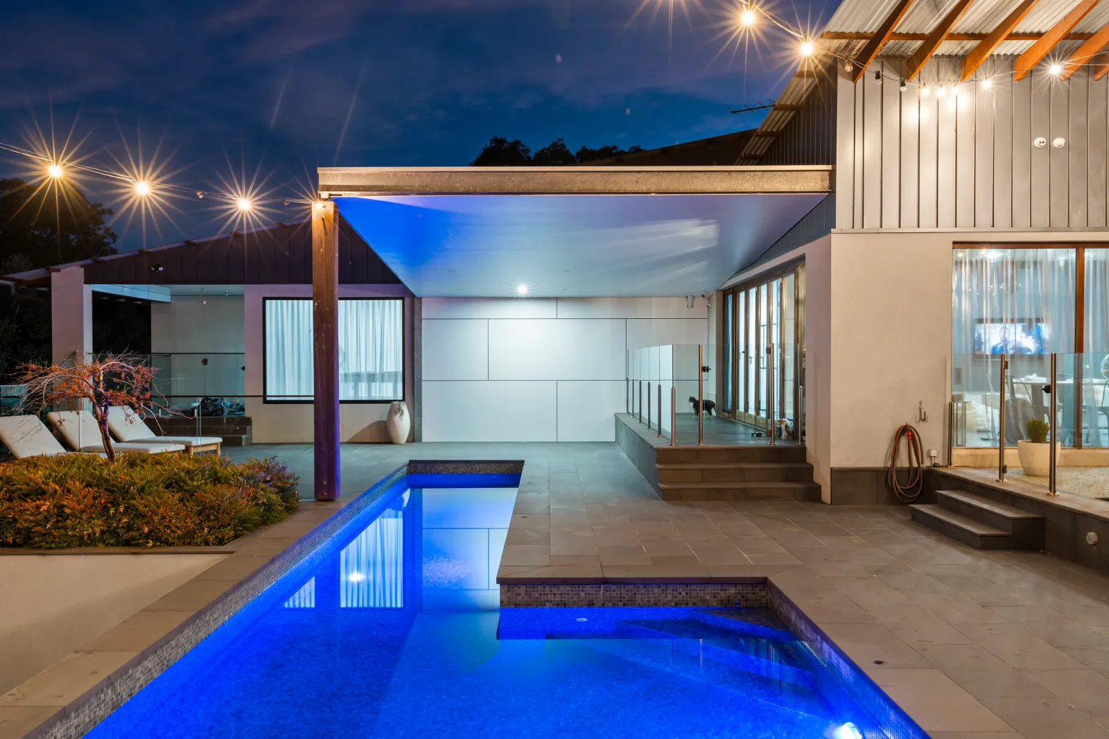 A striking highlight is the use of recycled timber posts from Kerford Pier, installed as structural and aesthetic features. Overlooking the 13m lap pool finished with recycled glass mosaic tiles, the balcony completes a view of unmatched architectural balance. Inside and out, Sloan’s blends high-tech convenience with warm, timeless finishes; from CBUS smart systems throughout to integrated speakers and automated lighting schemes.