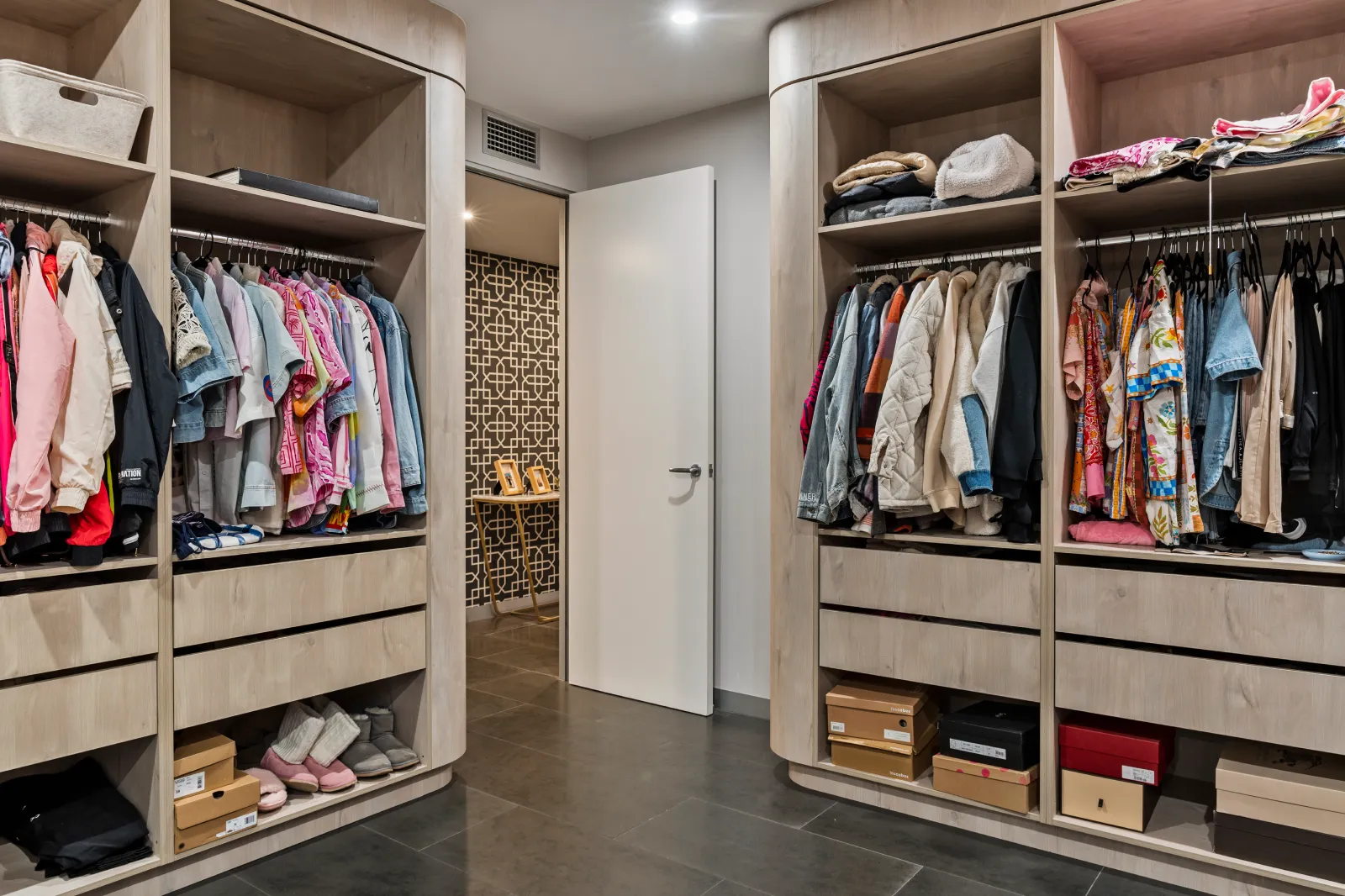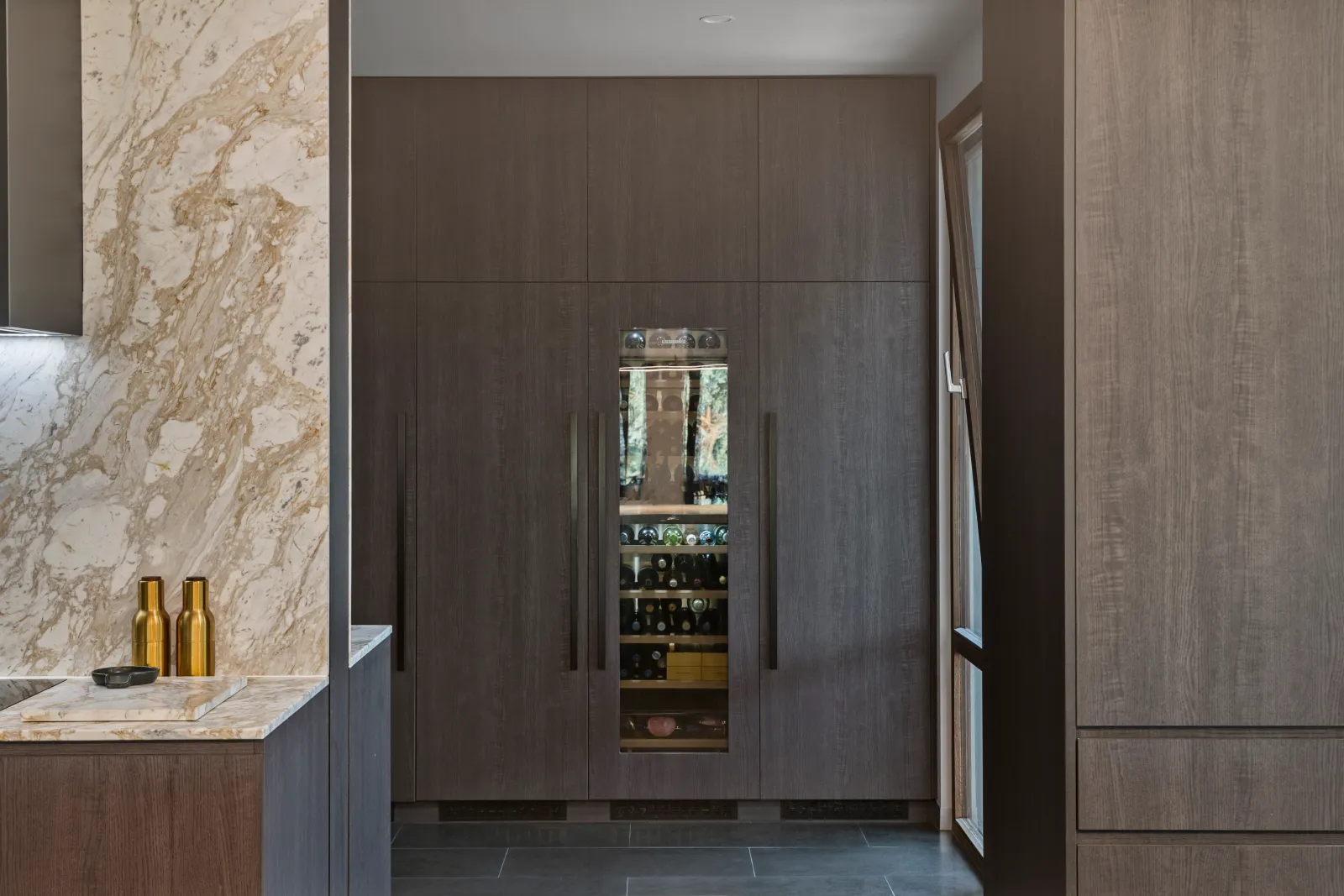Our North Warrandyte build is a showcase of elite living and thoughtful innovation. Anchored by a $250,000 kitchen and butler’s pantry, the space features gold-accented shadowline details, Miele appliances, a Liebherr wine cellar, and even a refrigerated drawer built into the island bench. Behind every cupboard lies anti-scratch finishing, stone inlays for appliances, and luxury detailing typically reserved for display homes — but made liveable.